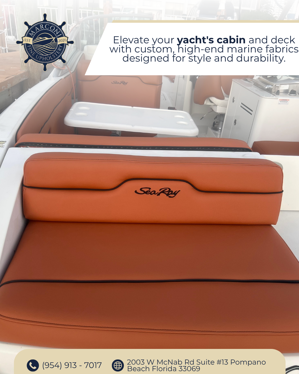 At Marconi Boats & Aviation Upholstery Shop, we combine fine materials and proven techniques to design custom interiors for yachts and aircraft. Every project reflects our focus on quality, style, and lasting performance.